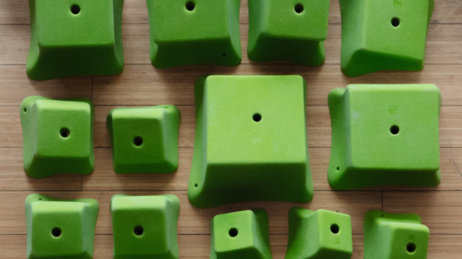 We bought these wrecktangles in medium alongside the large wrecktangles, and both sizes add a lot of fun and dimensionality to our 30-degree wall. I like these medium wrecktangles for pinches or edges to hang on; they're also easy to hold, so seem good for beginners to advanced levels. The color itself (ordered 11-26) came out a bit more of a brighter, more neon pink than I had expected (I was expecting a more berry pink), but I don't really mind the color either way.